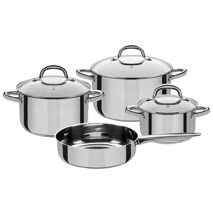 - handfreundliche Kaltmetallgriffe - energiesparender Kapselboden - für alle Herdarten geeignet, auch Induktion - Backofen geeignet bis 240 °C - 3 Töpfe + 3 Deckel + Bratpfanne
