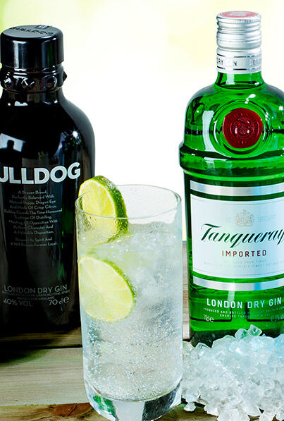 5 cl Gin, 2 cl Holunderblütensirup hinzufügen und mit Fever Tree Tonic Water auffüllen,