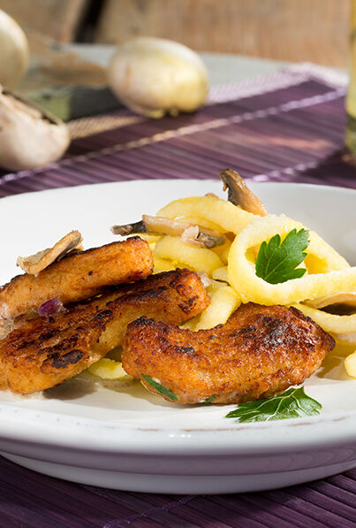 Vegetarische Filetstreifen mit Champignons