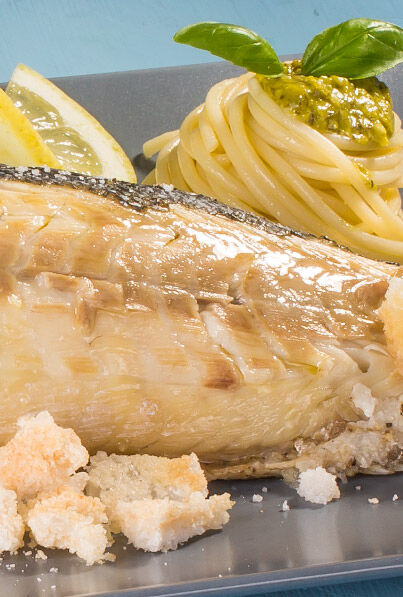 Wolfsbarsch im Salzmantel