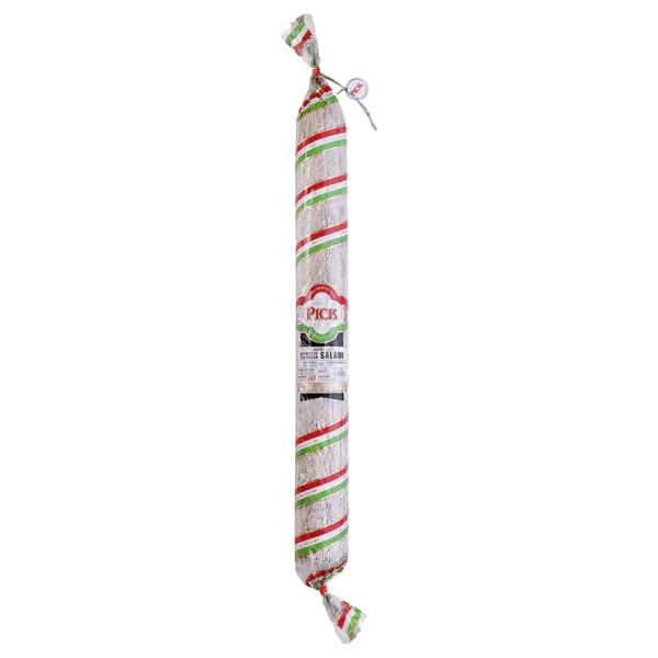 Die Salami pellen, in Scheiben schneiden und in einer beschichteten Pfanne kross anbraten. Danach beiseite stellen und abkühlen lassen.