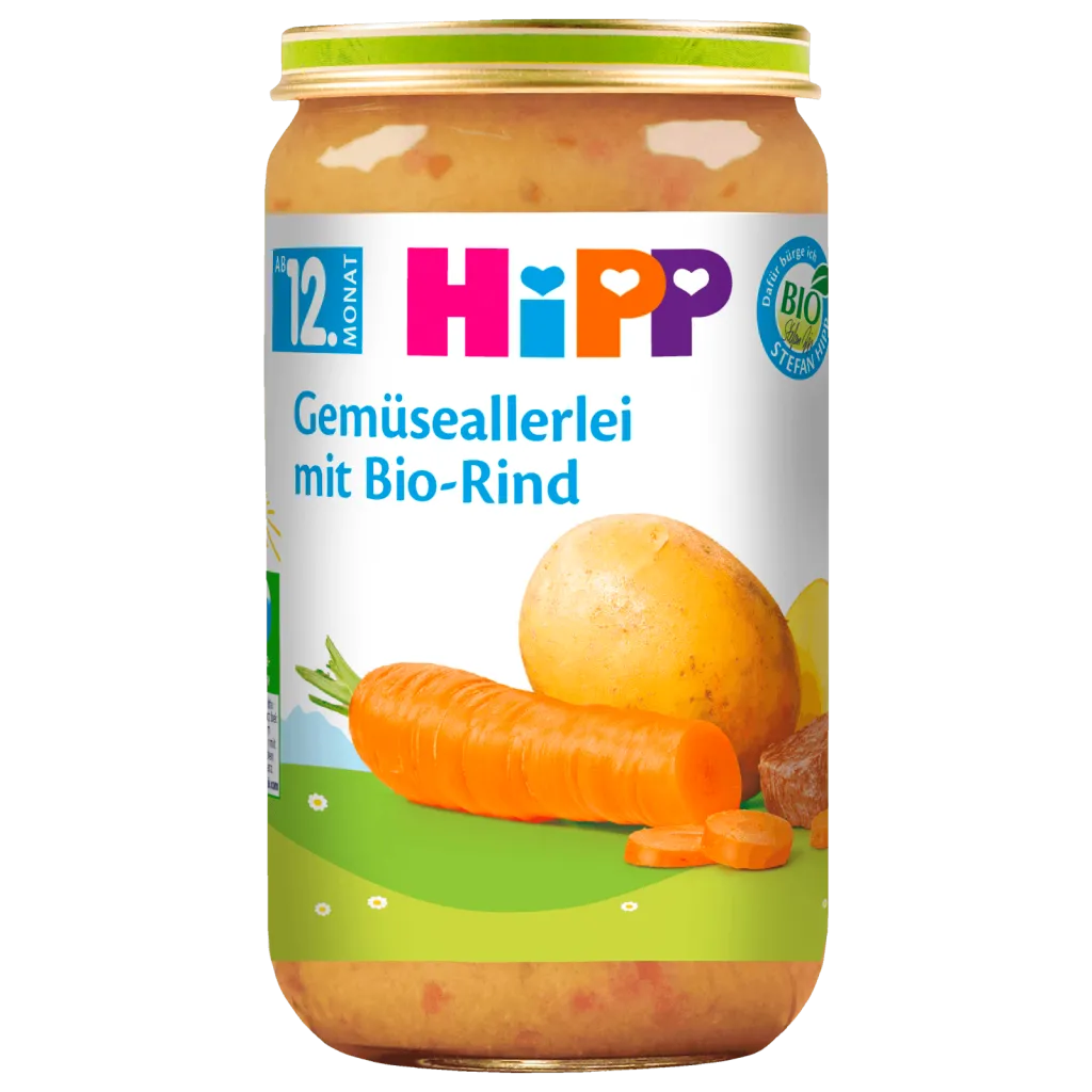 Hipp Menü, 12M Gemüseallerlei,Rind