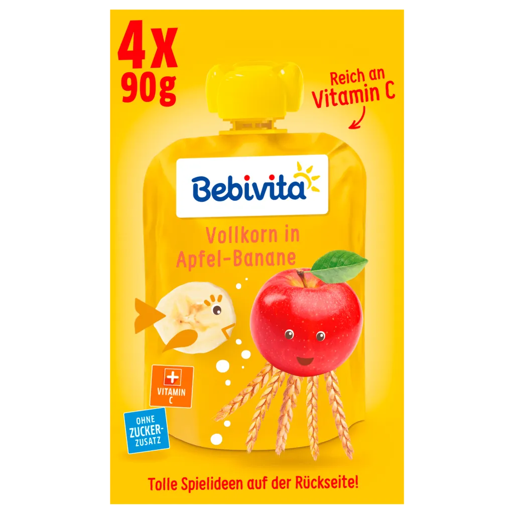 Bebivita Quetschbeutel, 1J Apfel-Banane-Pfirsich 4x90g Beutel 11x verfügbar DAUER DISCOUNT PREIS 2. 65