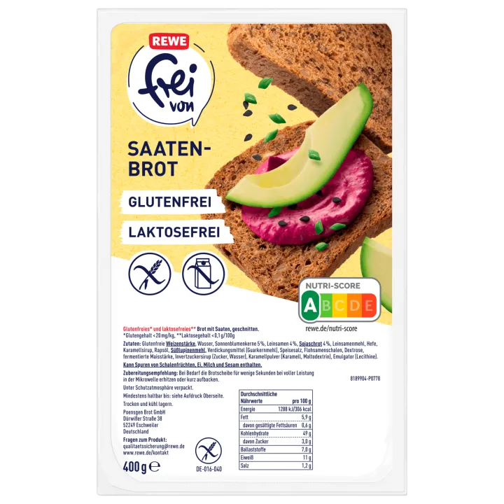 REWE frei von Pures Korn Brot ohne Mehl & ohne Hefe