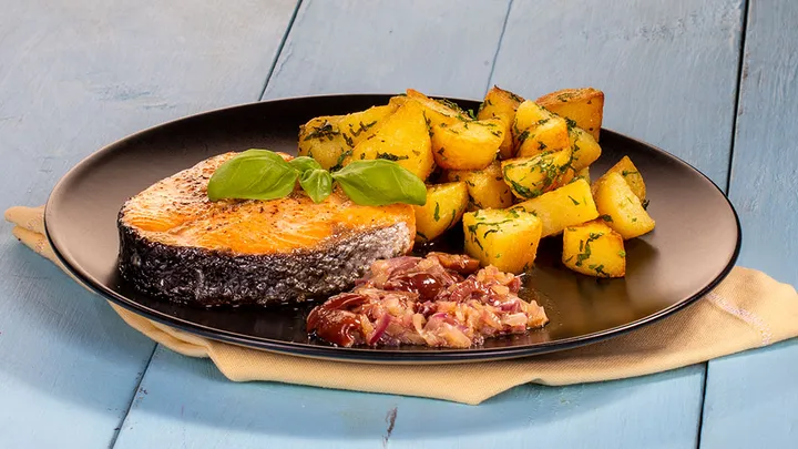 Hauptspeisen Lachskoteletts mit Olivenbutter und Petersilienkartoffeln 60 min 761 kcal p. Portion Leicht