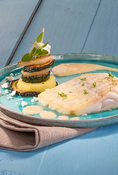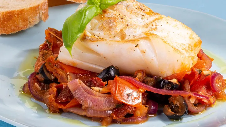 Hauptspeisen Gebratenes Kabeljaufilet an Spaghetti in scharfer Tomaten-Basilikum Sauce 55 min 750 kcal p. Portion Leicht