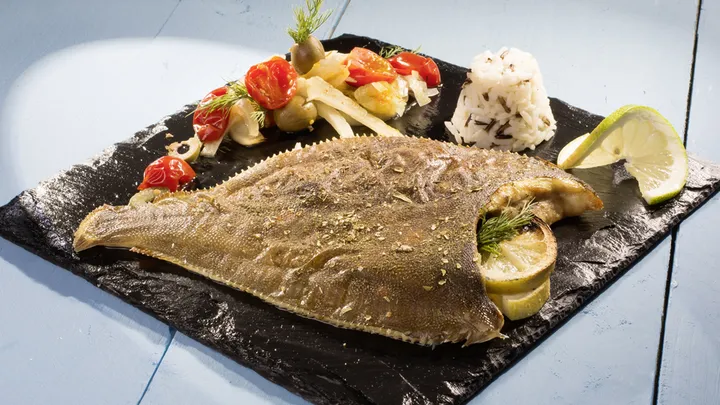Hauptspeisen Wolfsbarsch mit Orangen-Kräuter Füllung auf einem Kartoffel-Fenchel Bett 60 min 712 kcal p. Portion Leicht