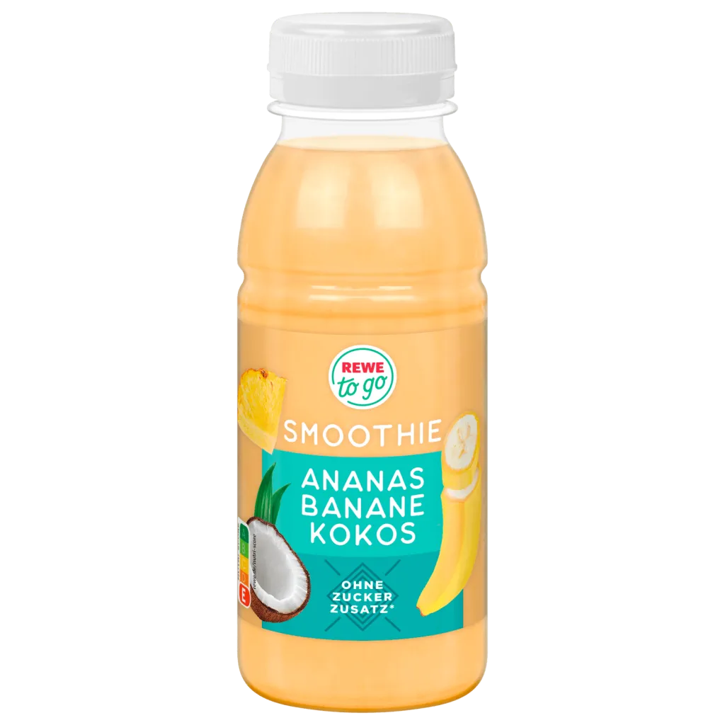 REWE to go Smoothie Apfel Ananas Traube 250ml Flasche 17x verfügbar DAUER DISCOUNT PREIS 1. 29 + 0.25 Pfand