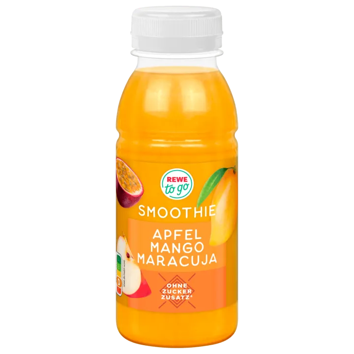 REWE to go Smoothie Mango, Maracuja 250ml Flasche 23x verfügbar DAUER DISCOUNT PREIS 1. 29 + 0.25 Pfand
