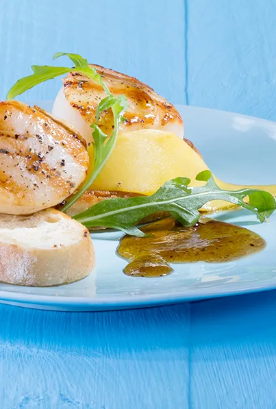 Tiefseescalopps mit Rucola-Mango-Salat