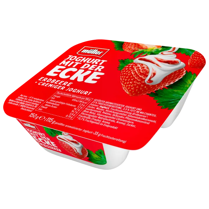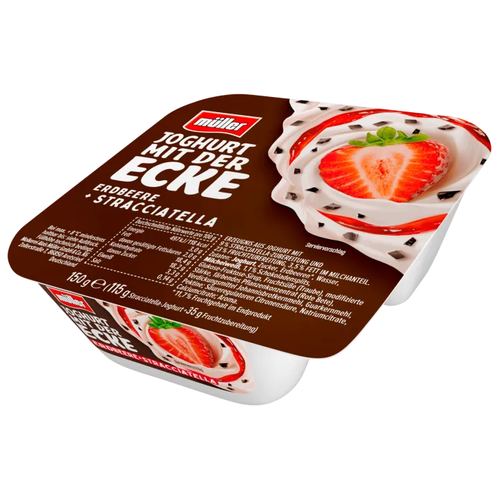 Müller Joghurt mit der Ecke Erdbeere-Stracciatella 150g Becher 21x verfügbar DAUER DISCOUNT PREIS 0. 89