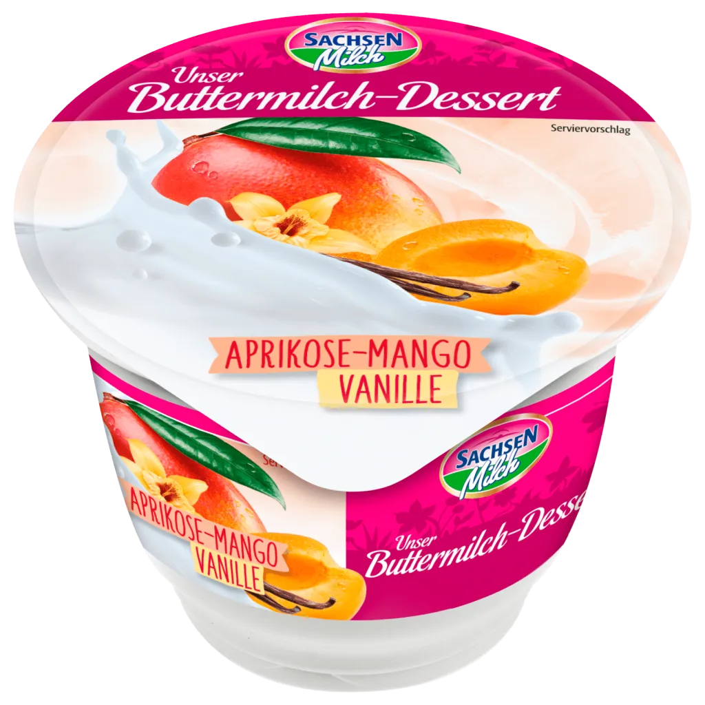 Sachsenmilch Buttermilch-Dessert Aprikose Mango Vanille
