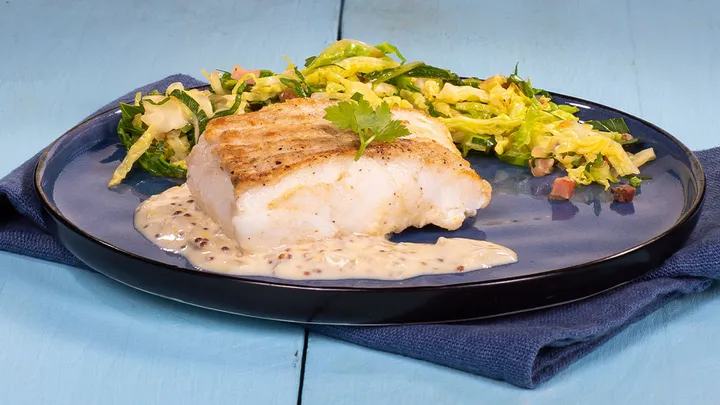 Hauptspeisen Skrei-Kabeljaufilet auf Wirsing mit leichter Senfsauce 50 min 919 kcal p. Portion Leicht