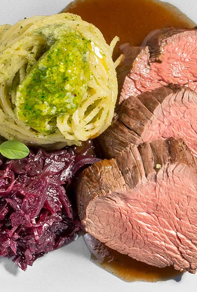 Hauptspeisen Piccata Milanese mit Oliven dazu Spaghetti in Tomatensauce 75 min 928 kcal p. Portion Mittel