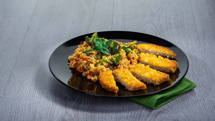 Vegane Paella mit Aubergine und Zucchini