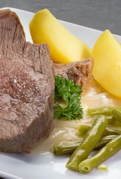 Suppe Rinderkraftbrühe mit selbstgemachten Speckknödeln 200 min 971 kcal p. Portion Leicht Vegetarisch