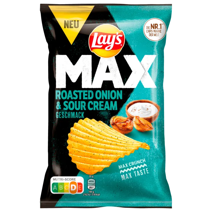 Lay's Kartoffelchips geriffelt Roated Onion&Sour Crema 110g Packung 25x verfügbar DAUER DISCOUNT PREIS 1. 99