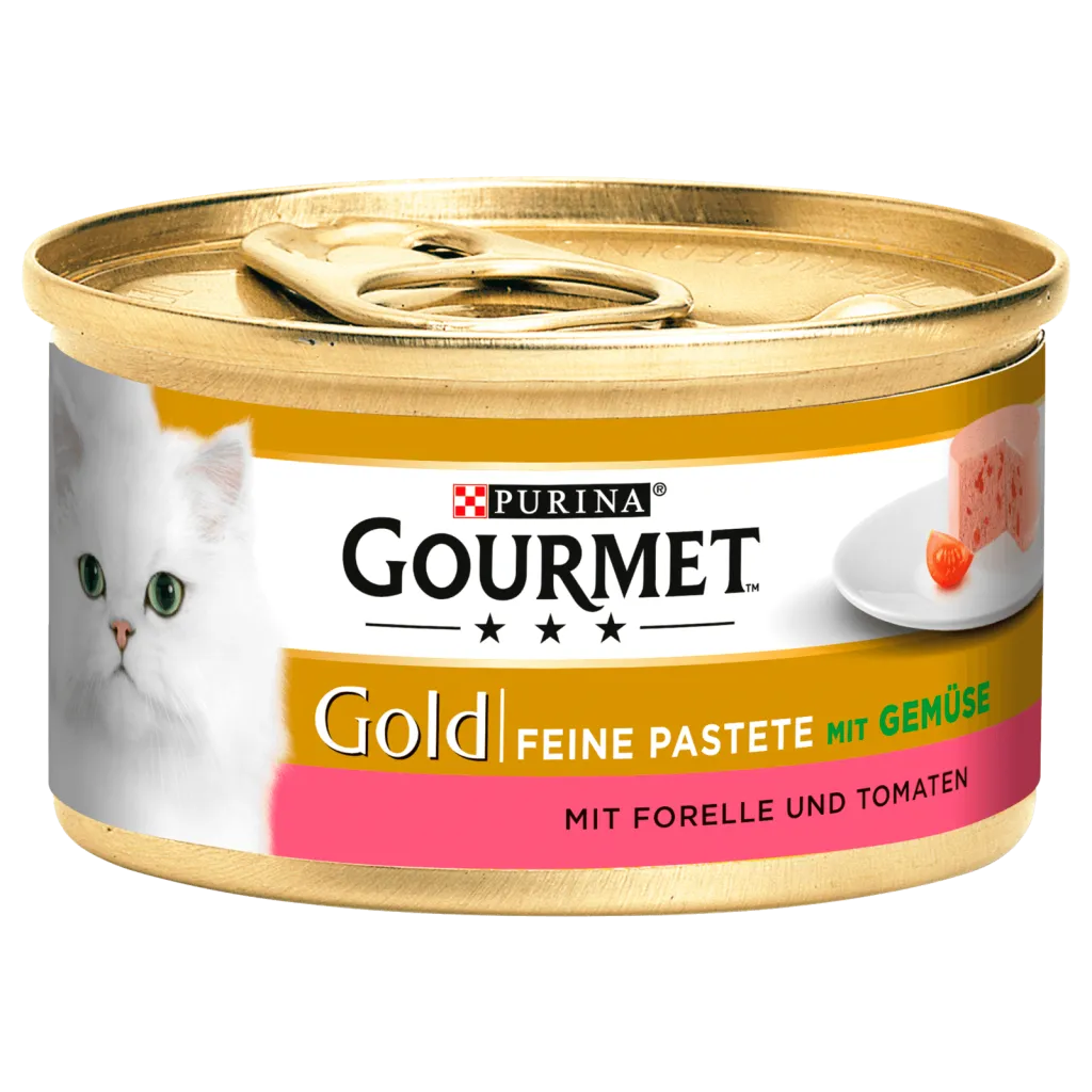 Gourmet Gold Katzenfutter nass Pastete, Forelle & Tomit