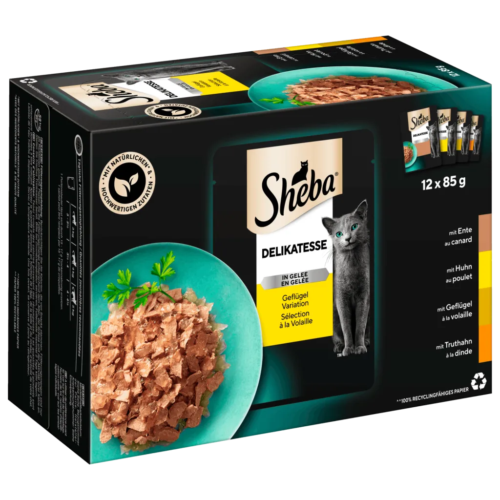 Sheba Katzenfutter nass Sel. Geflügel Var. MP 12x85g Packung 10x verfügbar DAUER DISCOUNT PREIS 6. 45
