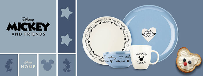 Die Disney Kollektion bringt Freude und Stil an den Tisch. Die liebevoll gestalteten Disney Micky- und Minnie-Maus-Motive zaubern Groß und Klein ein Lächeln ins Gesicht.
